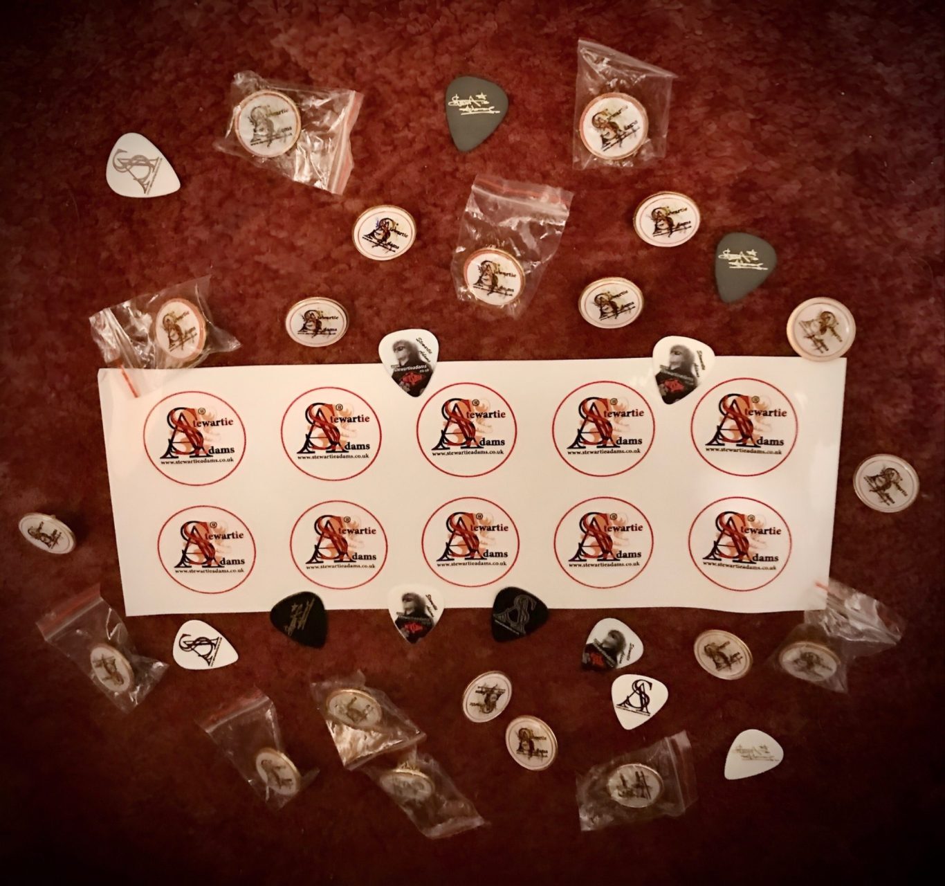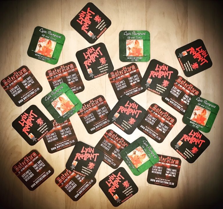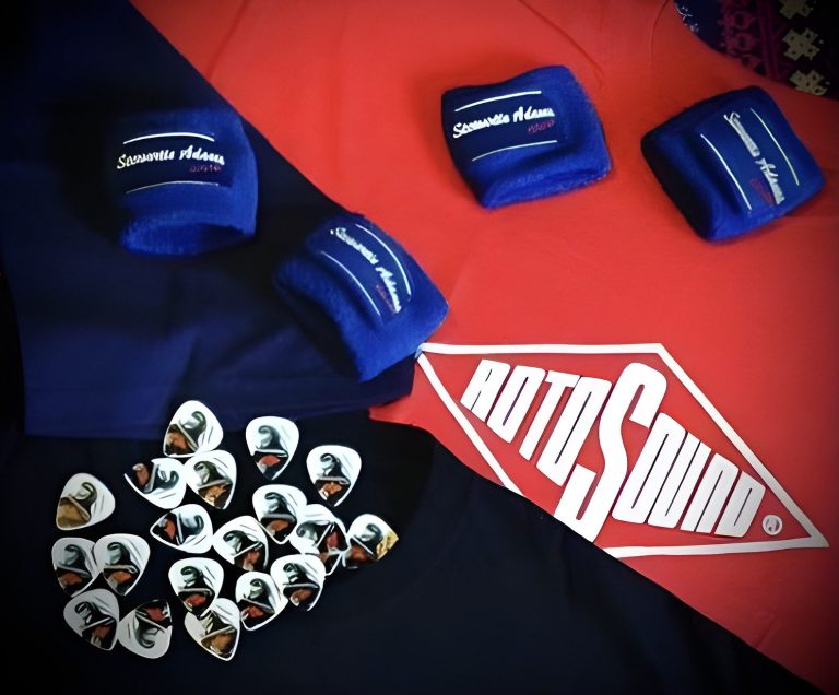 Guitar picks, Wristbands, Beer Mats,